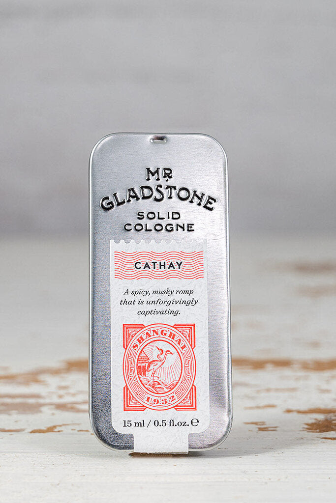 Mr. Gladstone crafts natural, solid wax-based colognes designed to roam, navigate and traverse life's thrilling paths with effortless confidence. Portable, spill-proof and discreet, a mere dab on the pulse points has the endurance and vigor to withstand a long day's journey into night. To apply, lightly slide a finger over cologne and dab onto pulse points such as the wrist, or behind the ears and neck. Scent notes include: sandalwood, mandarin, vanilla, amber, musk, and white clover honey.