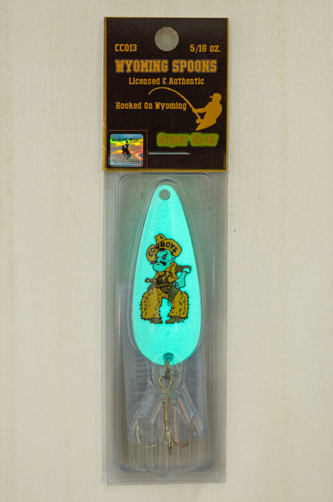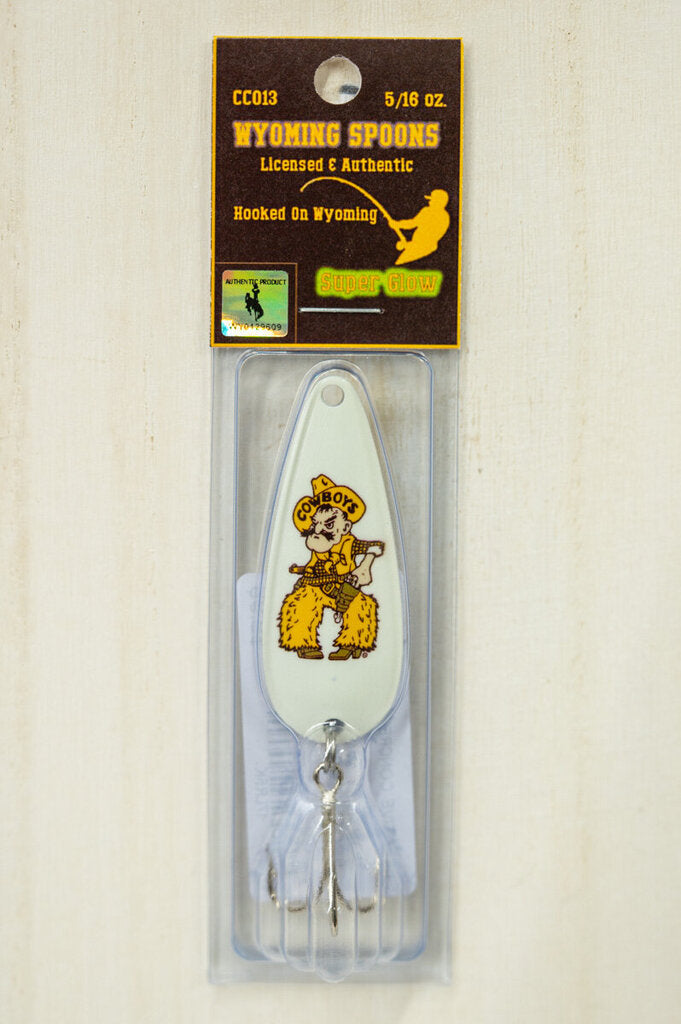 Wyoming Spoon CC013 - Officially Licensed & Authentic, 2 1/4" Long, 5/16 Ounce, Pistol Pete with White (Glow in the dark) background on the front and White (Glow in the dark) on the back.