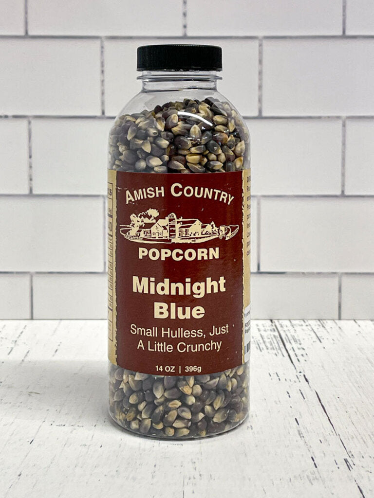 The Midnight Blue variety is hulless and small with a sweet, memorable flavor. This variety has its own delicious flavor, but also pairs well with our seasonings. For best results, this corn should be popped at a higher temperature. While our uniquely-colored varieties(Midnight Blue, Red, Purple, Blue, Rainbow) have a colored kernel, they will be white or yellow once popped.
